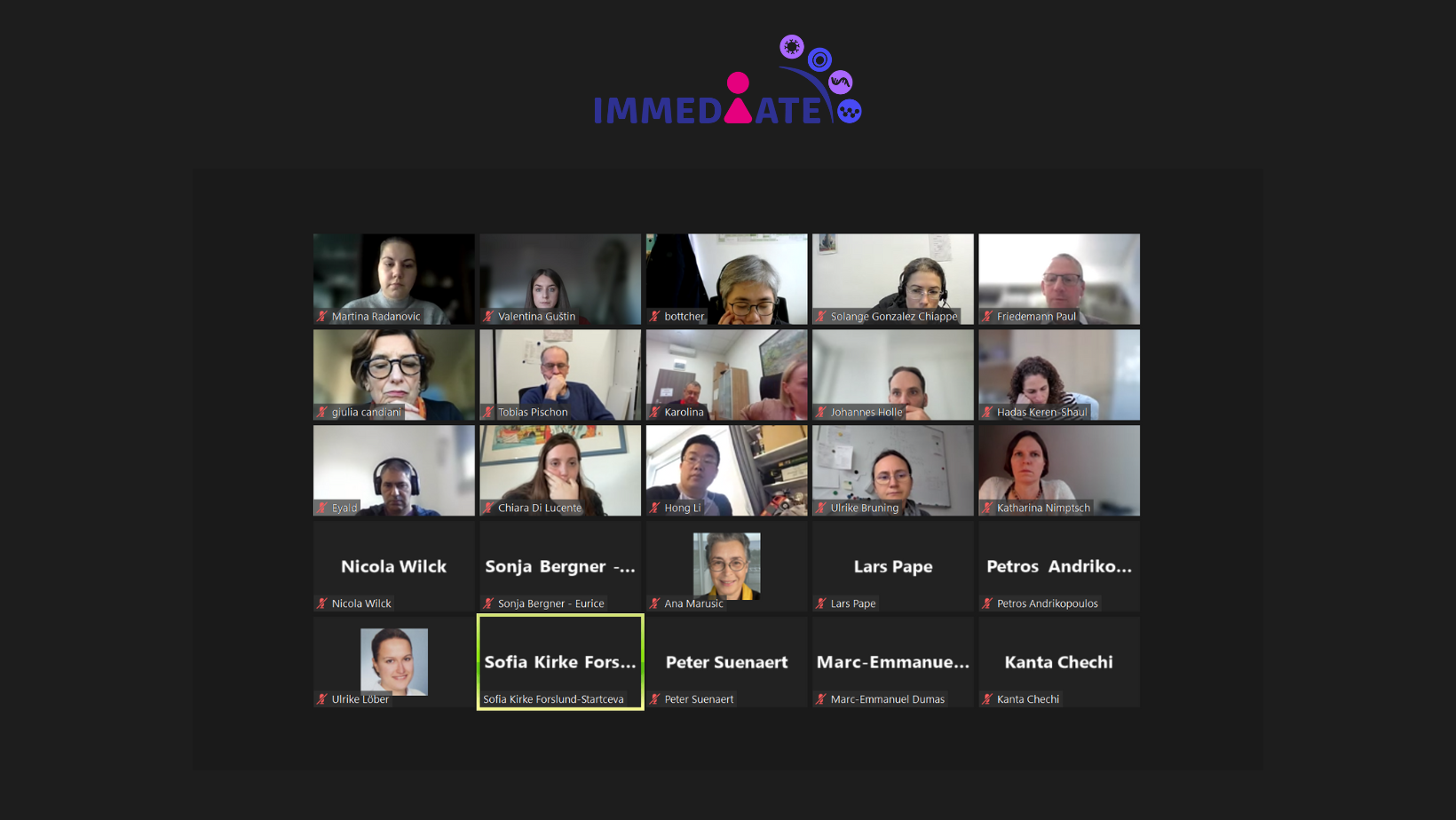 On the 29th of November, the IMMEDIATE consortium gathered virtually for their first General Assembly meeting. Kindly hosted by the project coordinator Prof. Dr. med. Friedemann Paul, and co-coordinator, PD Dr. Chotima Böttcher from Charite, the meeting brought together approximately 25 partners. Nearly one year into the project, it offered an ideal opportunity to reflect on the past period, assess achievements, identify current challenges, and strategize collaborative solutions among partners. It provided a comprehensive overview of the progress within each work package, ensuring a seamless flow of information among all participants.