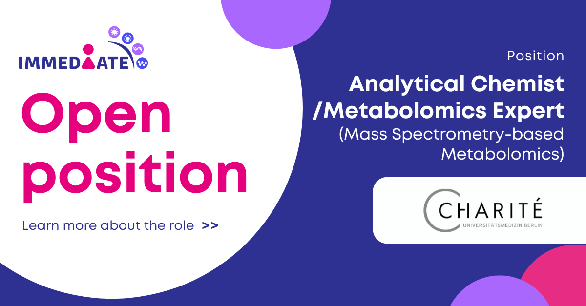 Charité Berlin is looking for an Analytical Chemist /Metabolomics Expert to join their team working on the IMMEDIATE project.